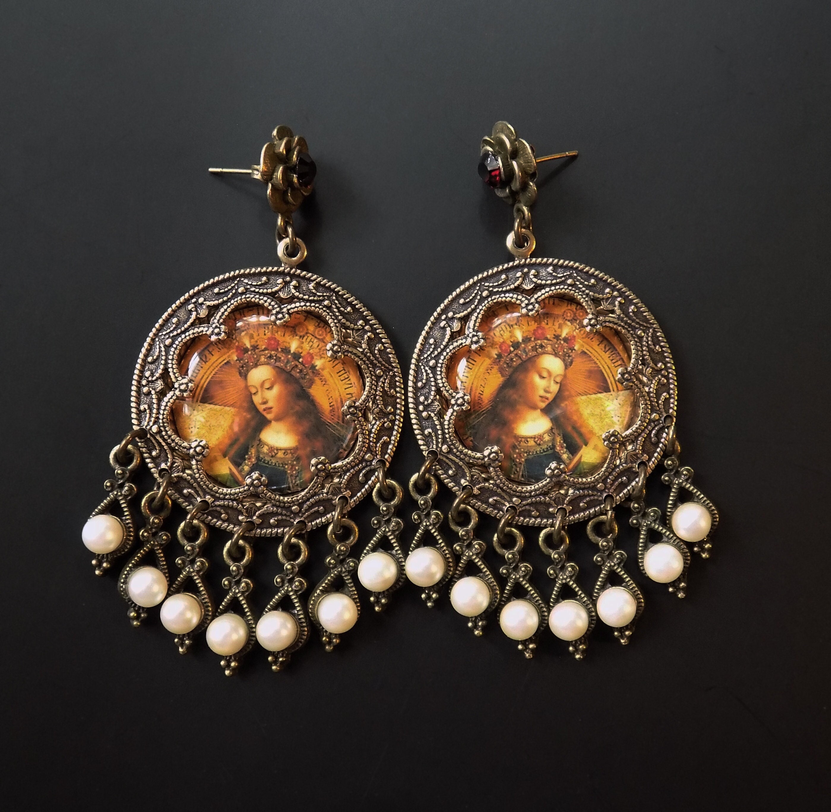 Ghent Alterpiece Mary Earrings Blessed Mother Pearl And Etsy